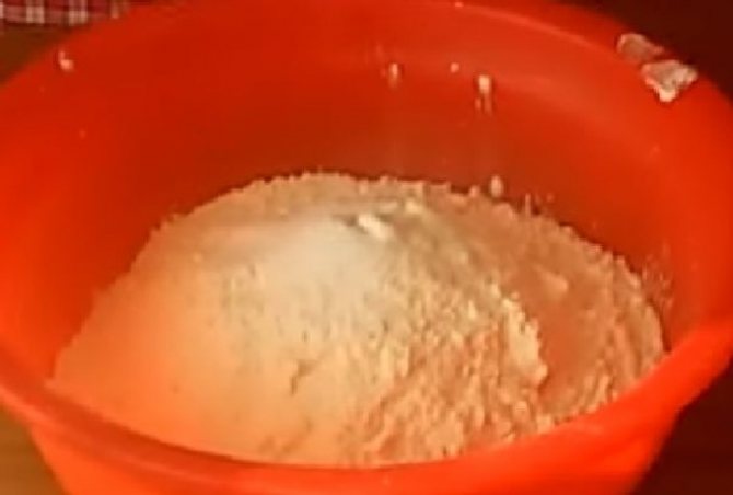 Шаг 1. Соль соедините с сахаром в глубокой чашке и просейте к ним сразу муку.