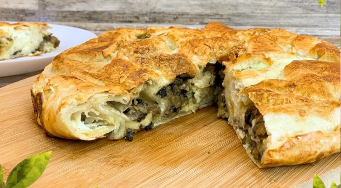 Пирог из лаваша с начинкой из грибов и сыра