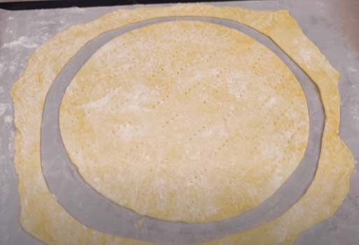 Обязательно накалывать вилкой тесто. Перед тем, как отправлять тесто в духовку наколите его в нескольких местах вилкой. Так оно не будет сильно пузыриться и выдуваться.